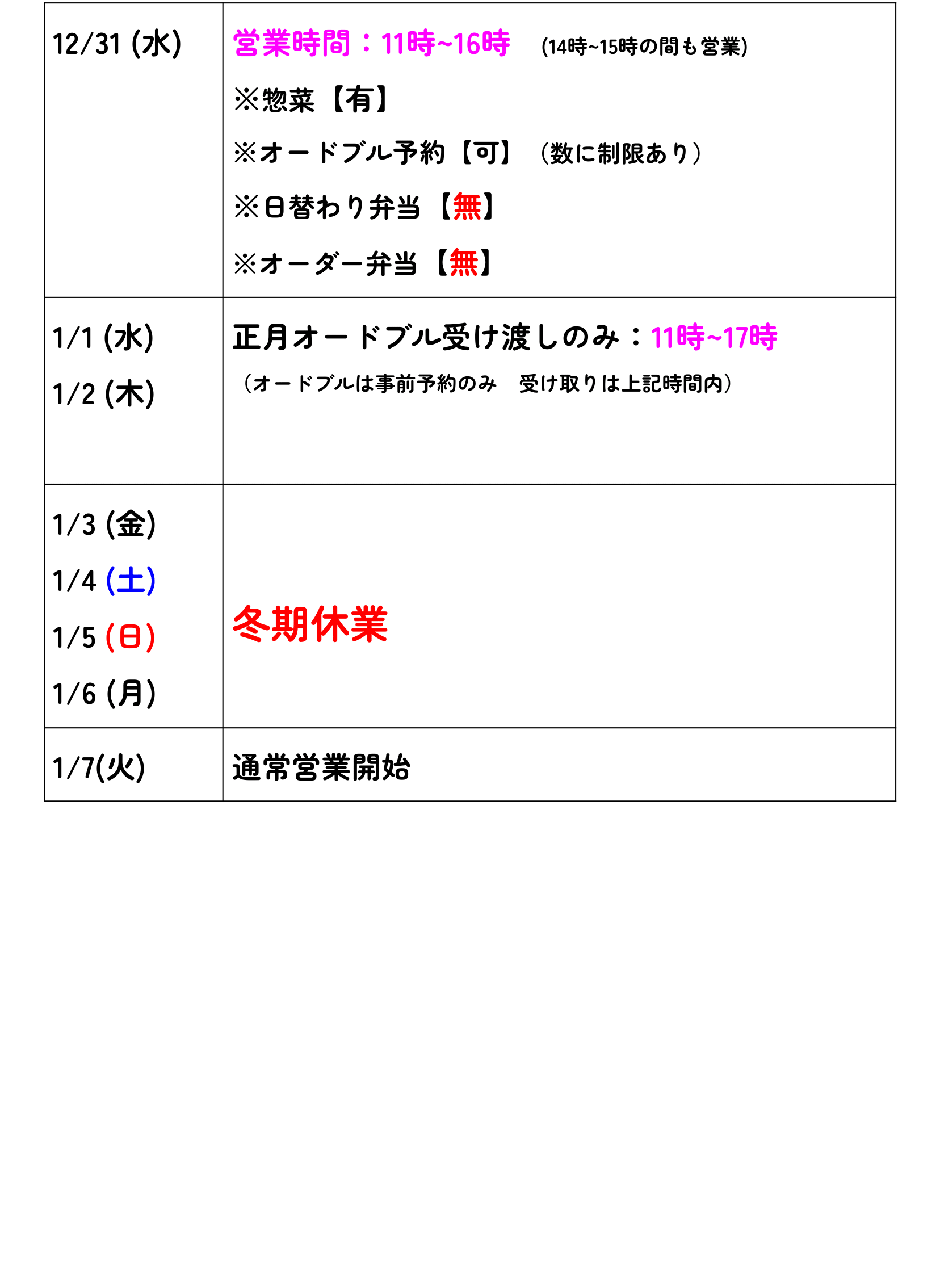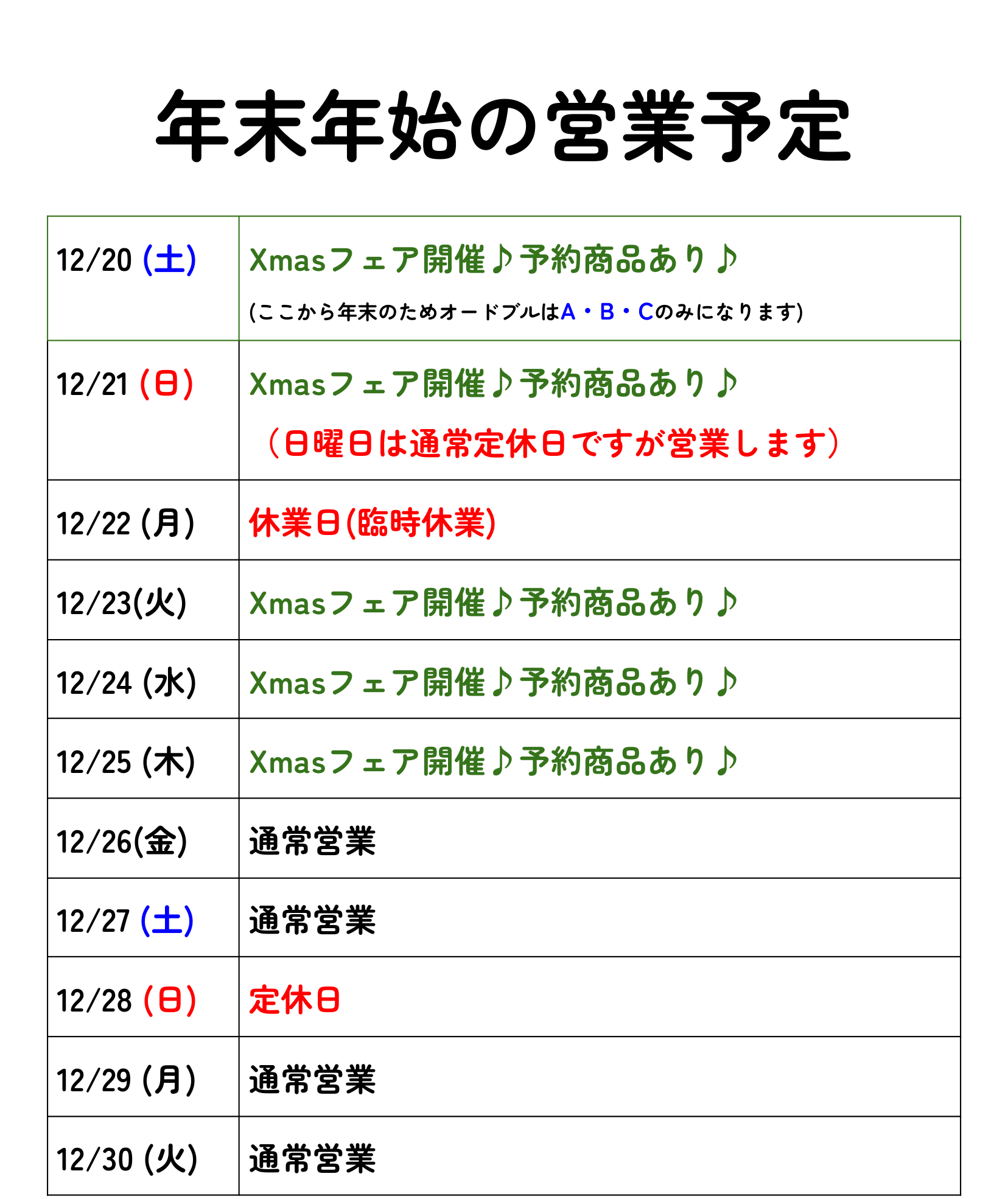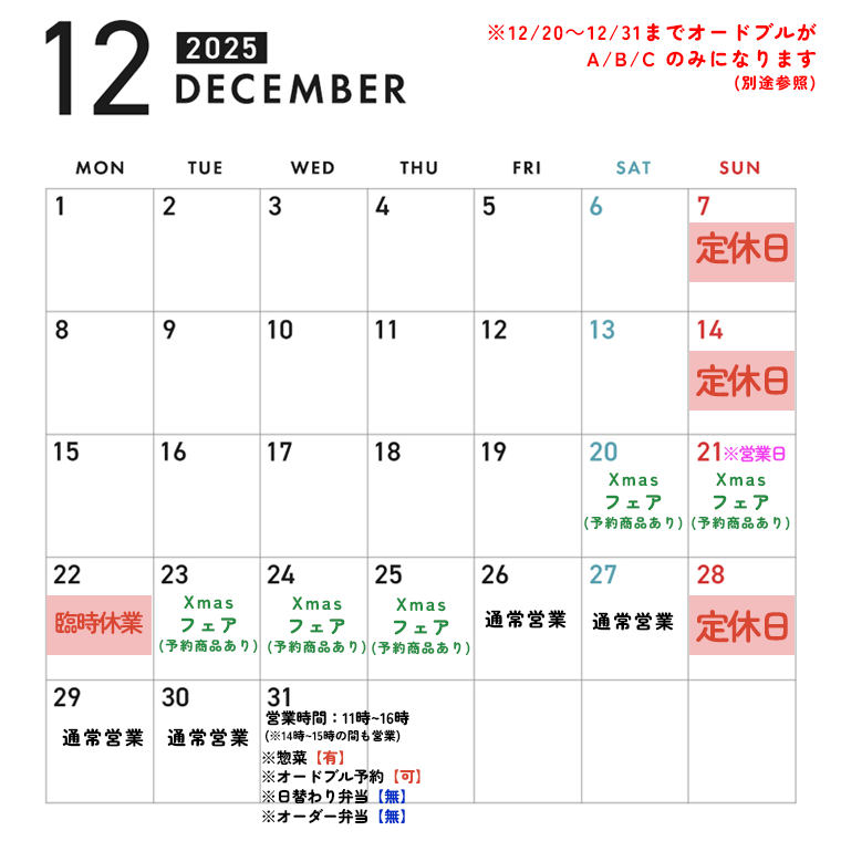 年末年始カレンダー